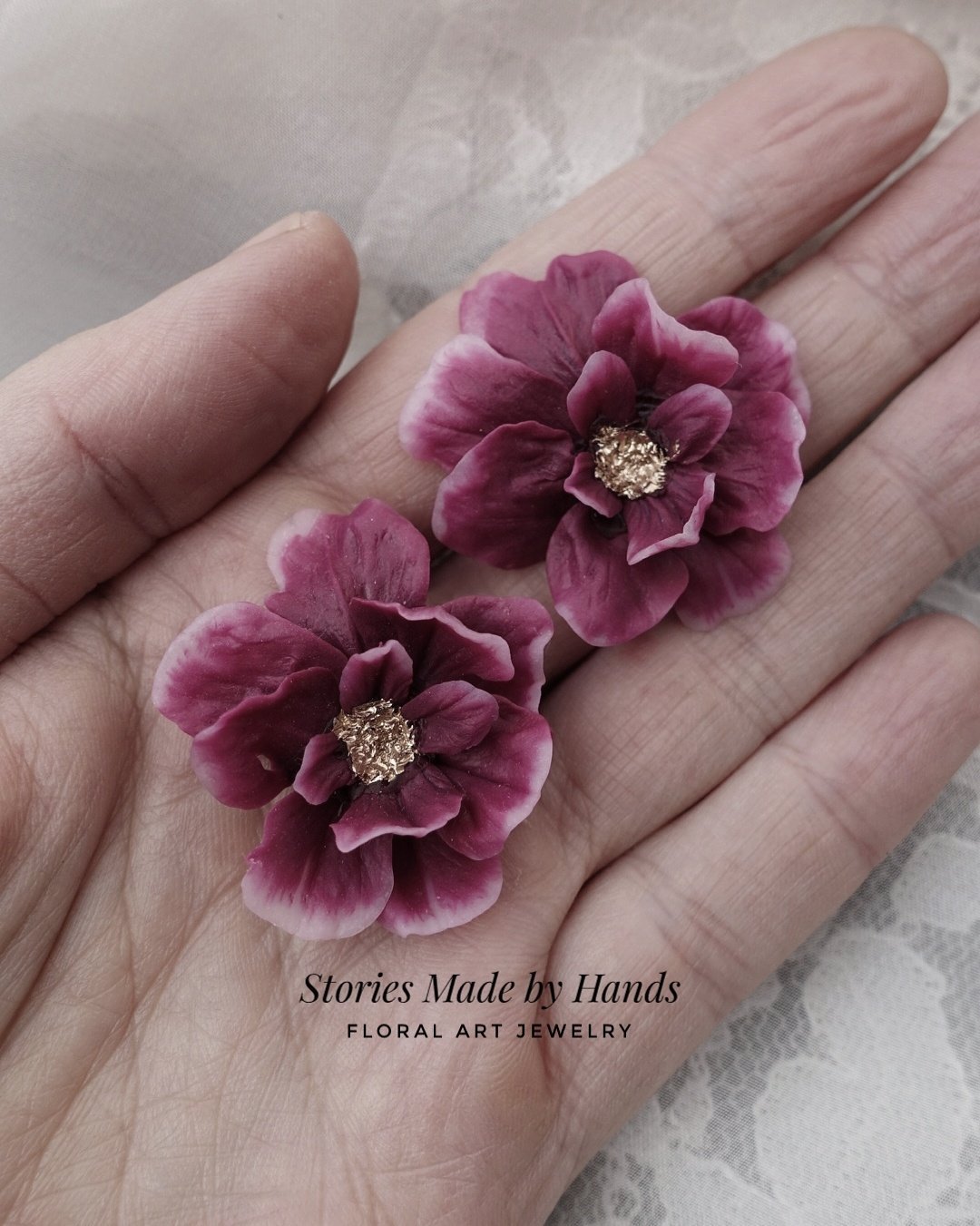 The colors are always carefully chosen for each piece of jewelry. I mix colors until I get the color and tone that I really want, then I shape and decorate each and every pieces. I work with a very thin needle, applying every detail, some of my details are less than a millimeter. My jewelry is not made by using molds. The polymer clay cabochon, petals and other details are made by hand. Each piece of my jewelry is unrepeatable-you can be sure. I really love what I do, and I enjoy it. Jewelry shown here is made with great love, patience and passion to create something that is uniquely.